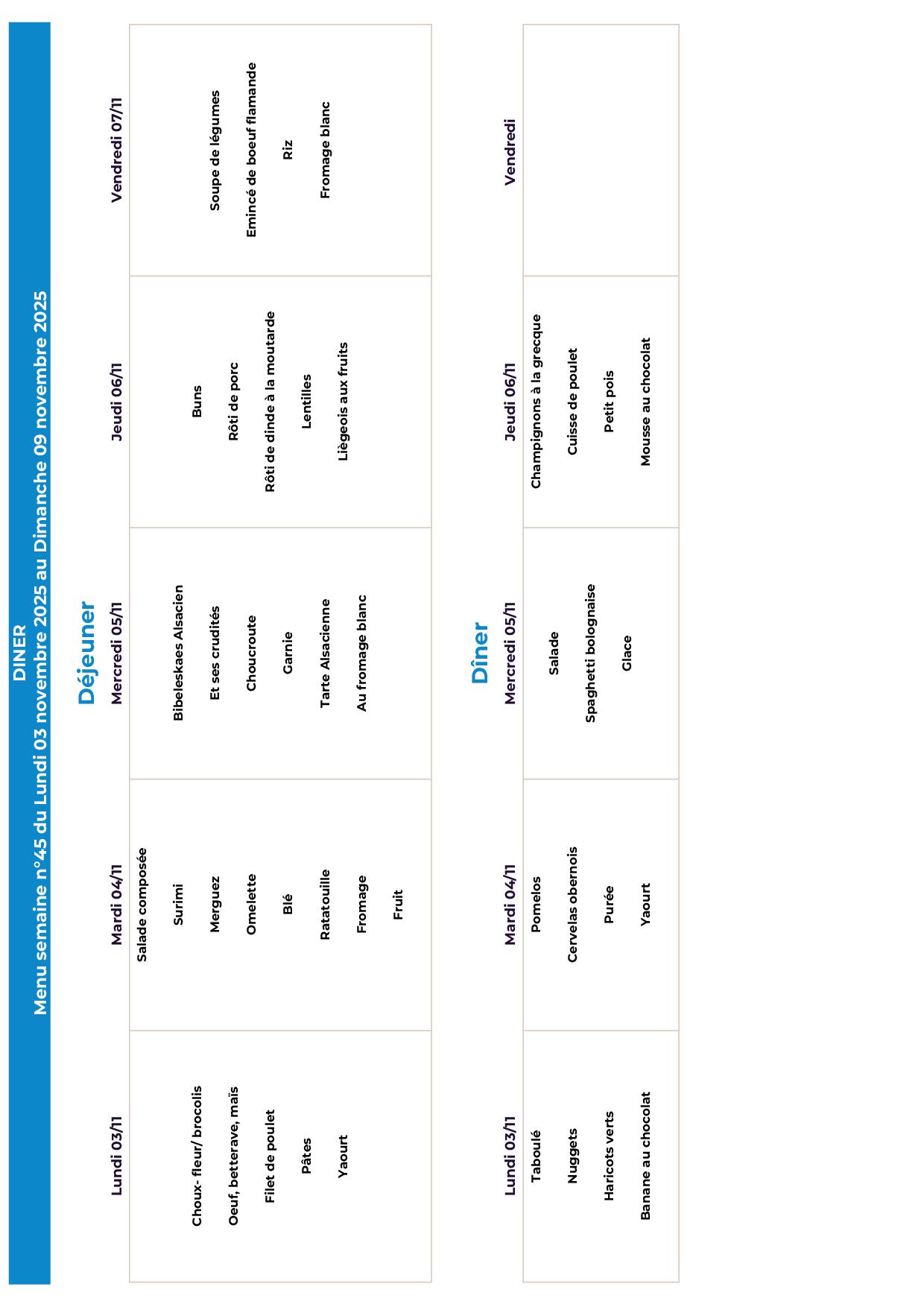 Menus de la semaine